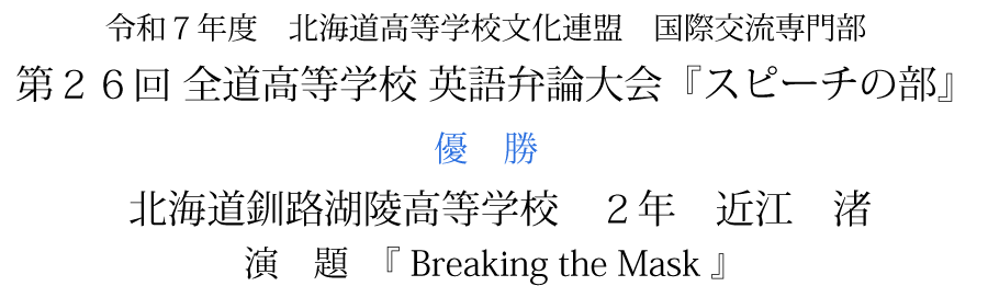 ■□■ 第26回 全道高等学校英語弁論大会 スピーチの部 ■□■
